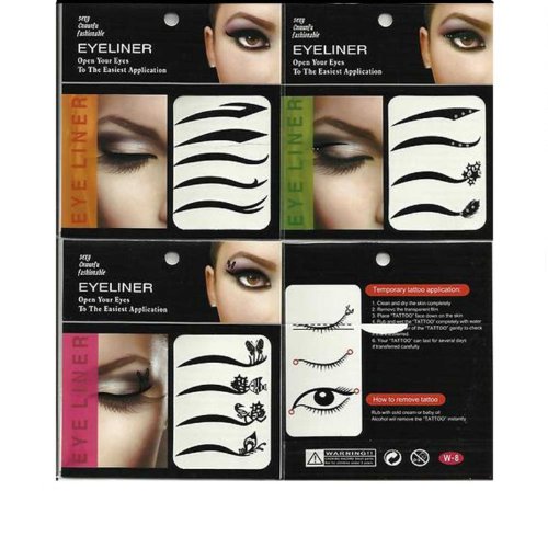 12 Pairs of Temporary Eyeliner Eye Liner Sticker Stickers Transfer Makeup Instant Tattoo RAVE PUNK Lady Gaga x 3 Multipack